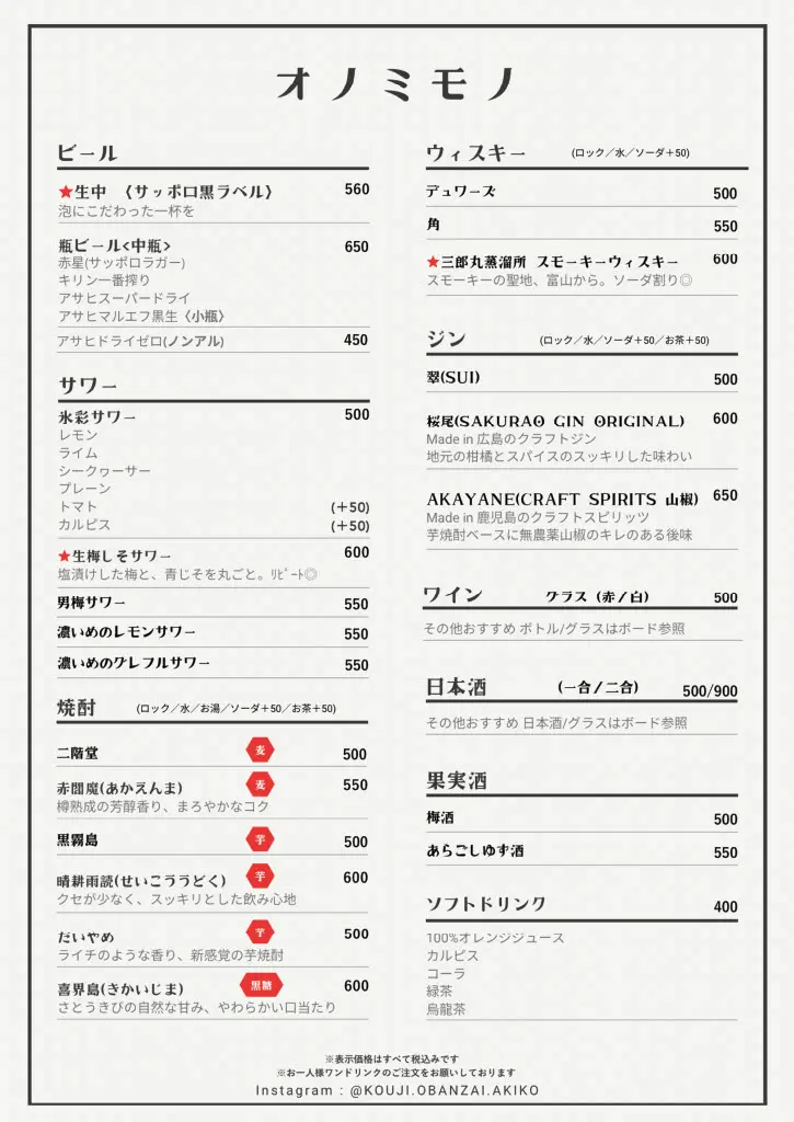 L.O. フード22:00 / ドリンク22:30 - 定休日